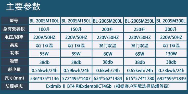▲防爆冰箱主要參數(shù)表